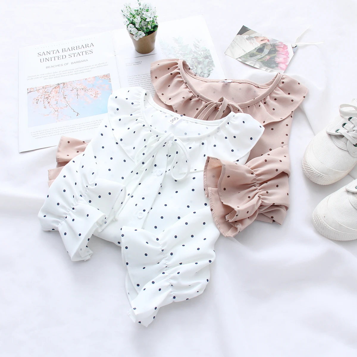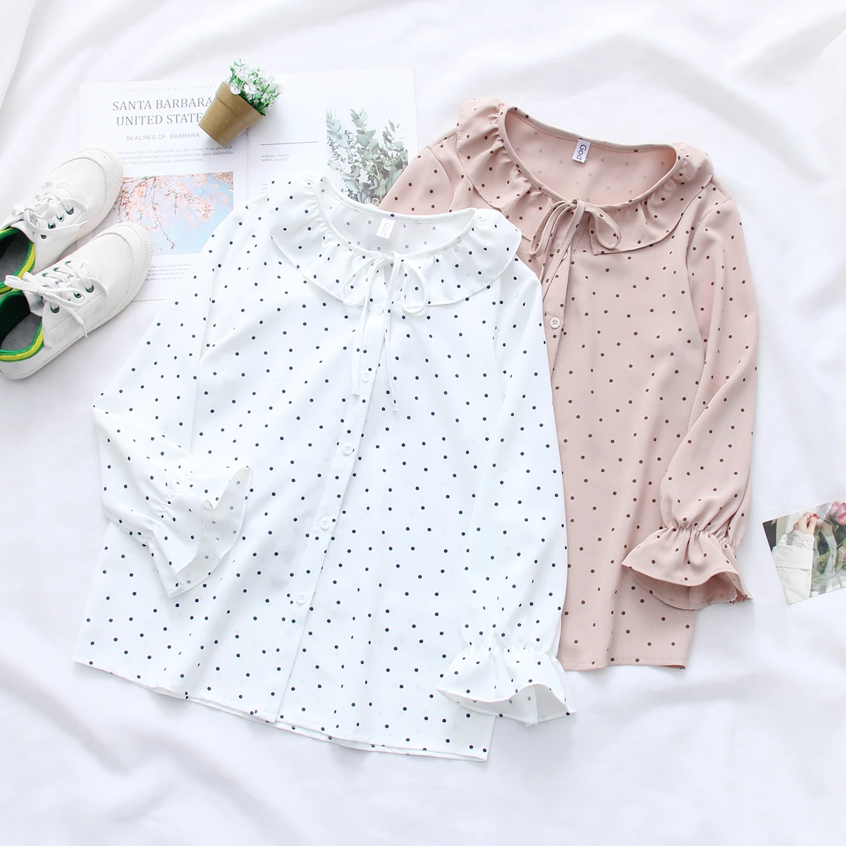 Special Offer 2019 nuevas camisetas de verano de primavera Casual de manga larga con estampado de puntos blusas de gasa con mangas de mariposa para mujer Discount 0% Today!