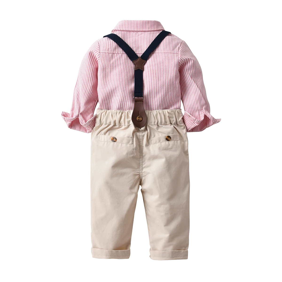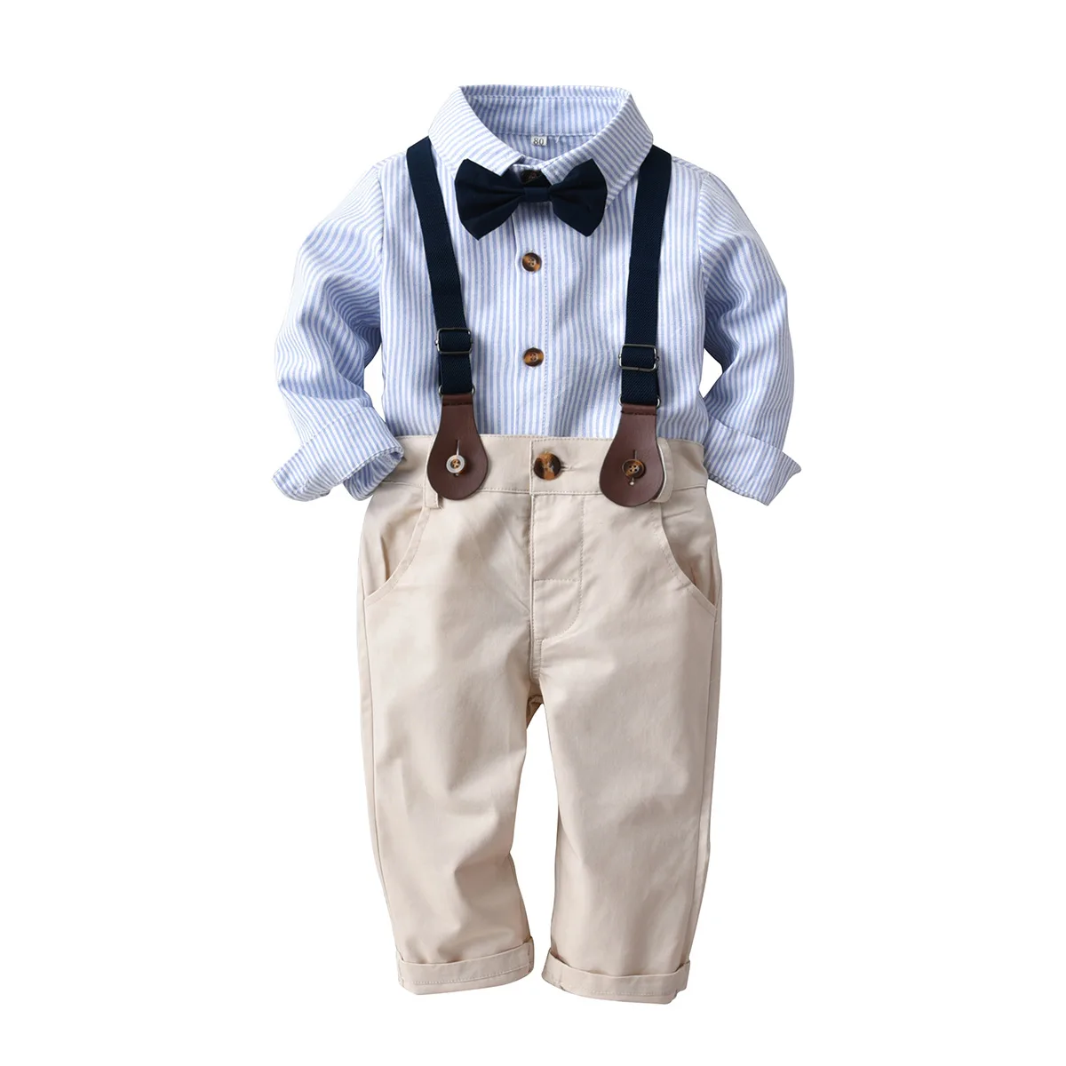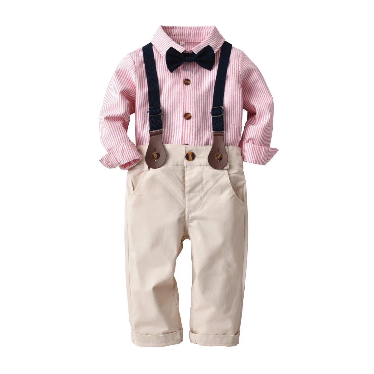 Special Offer 6M 4Y 2 piezas Niño bebé niño Caballero traje Camisa + Pantalones de babero general + camisa de pajarita para bodas o trajes de caballero para fiestas Discount 0% Today!