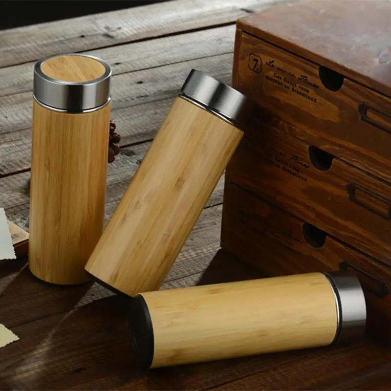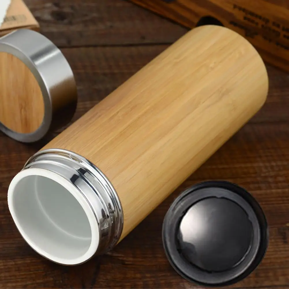 Special Offer 350 450ml termo de bambú botella de acero inoxidable cerámica vaso frascos al vacío botellas aislantes taza de café para viaje termo taza Discount 13% Today!