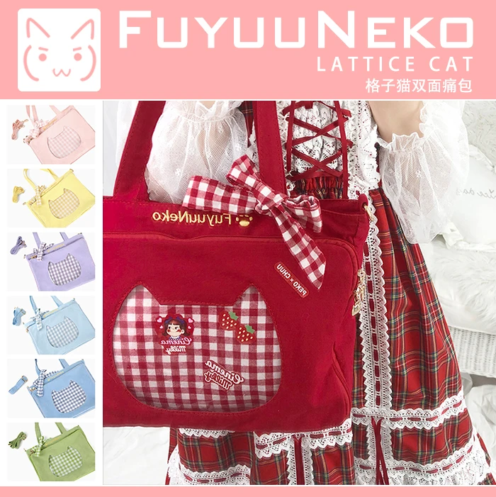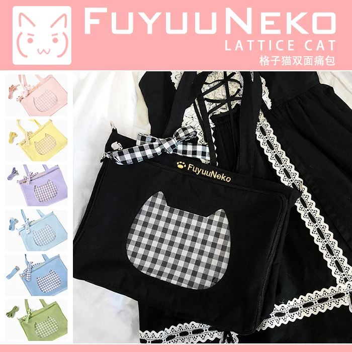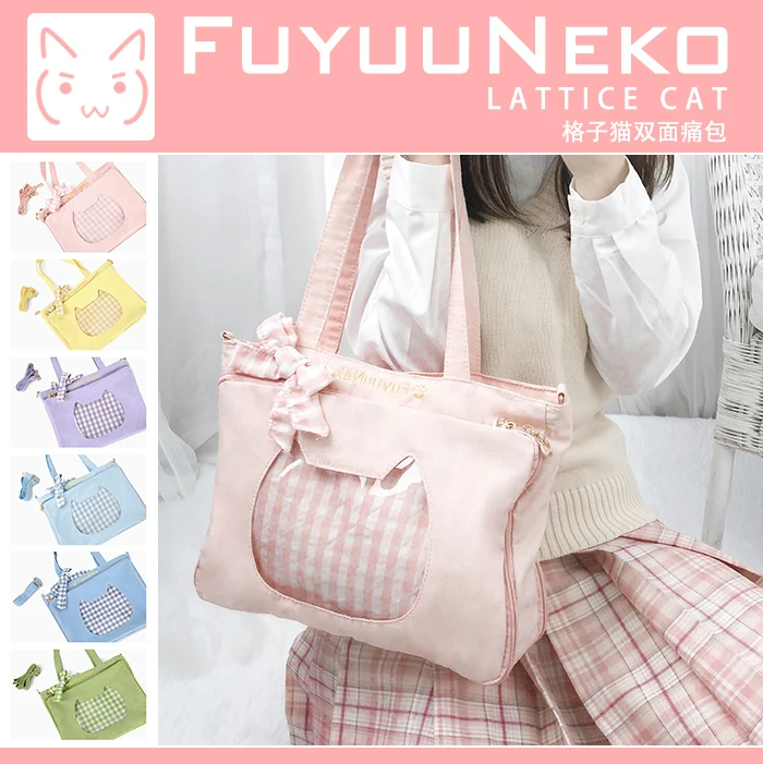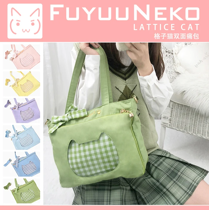 Special Offer Lindo arco Plaid Cat de doble cara JK uniforme Itabag Lolita transparente bolso de hombro japonés chica bolso de cosplay bolso ita Discount 13% Today!