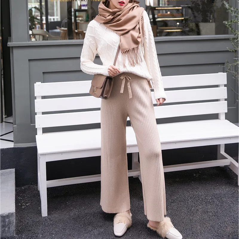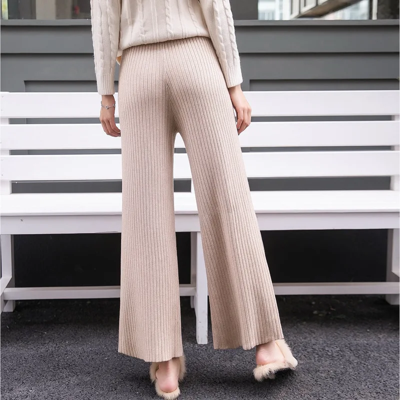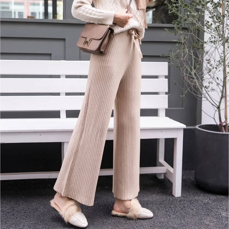 Special Offer Algodón de punto de alta cintura pantalones de pierna ancha 2019 otoño lana cachemir pantalones femeninos casuales pantalones de pierna ancha pantalones de mujer inferior Discount 15% Today!