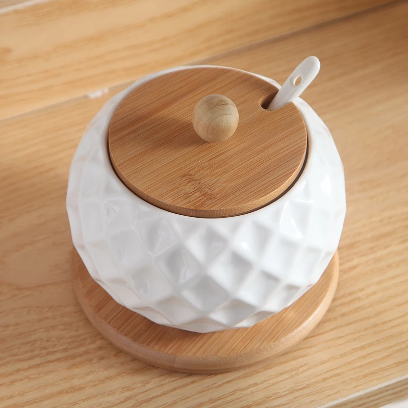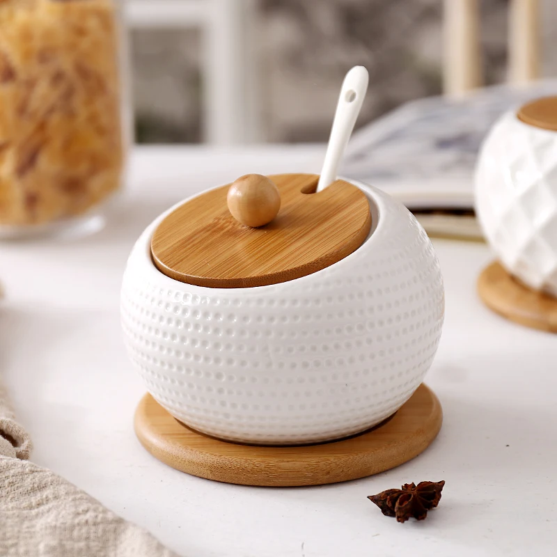 Special Offer 500g tazón de azúcar de cerámica cruet frasco de condimento botella de sal hogar cocina herramienta de sazonado vidrio tapa de madera tanque de almacenamiento Discount 25% Today!