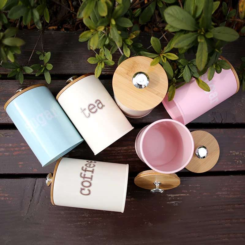 Special Offer Tanques de almacenamiento cubiertos de madera creativos utensilios de cocina de acero multifunción Color té café azúcar latas caja cuadrada hogar Discount 27% Today!