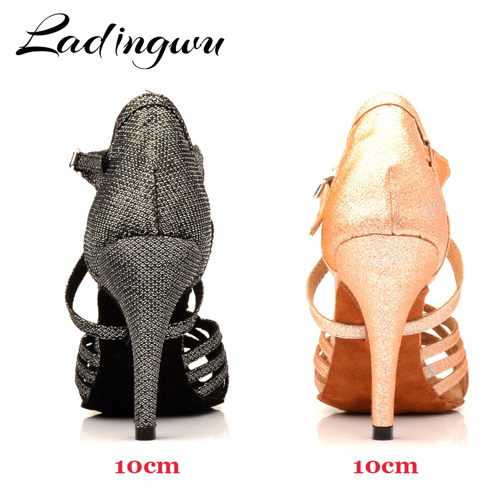 Special Offer Ladingwu zapatos de baile de fiesta para mujer champán gris brillo tela suave inferior zapatos de baile latino mujer Salsa zapatos tacones Discount 29% Today!