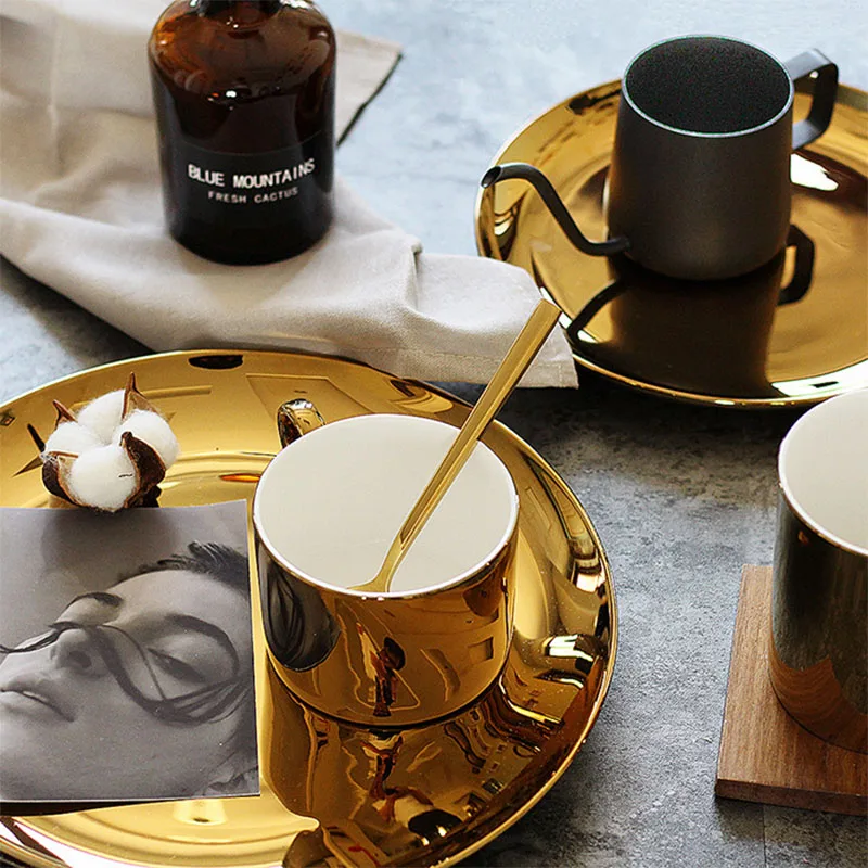 Special Offer 1 Uds. De cerámica Europea chapada en oro placa de cerámica plato de cena tazón 8 pulgadas 10 pulgadas porcelana taza de café plato de postre Discount 37% Today!