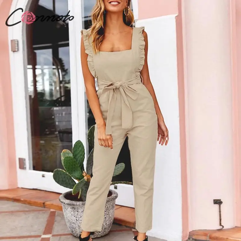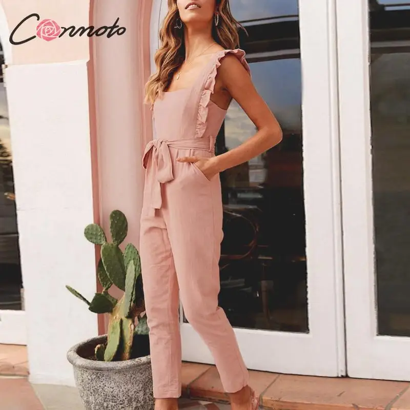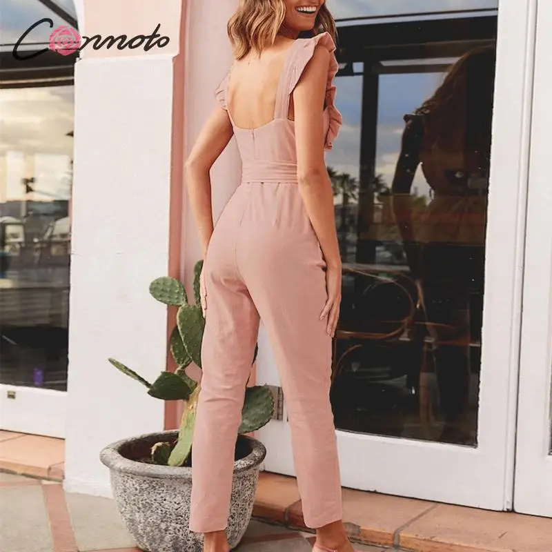 Special Offer Mono Casual de color rosa sólido de Conmoto monos de mujer sin espalda lazo con volantes de verano para mujer monos largos de talla grande Discount 40% Today!