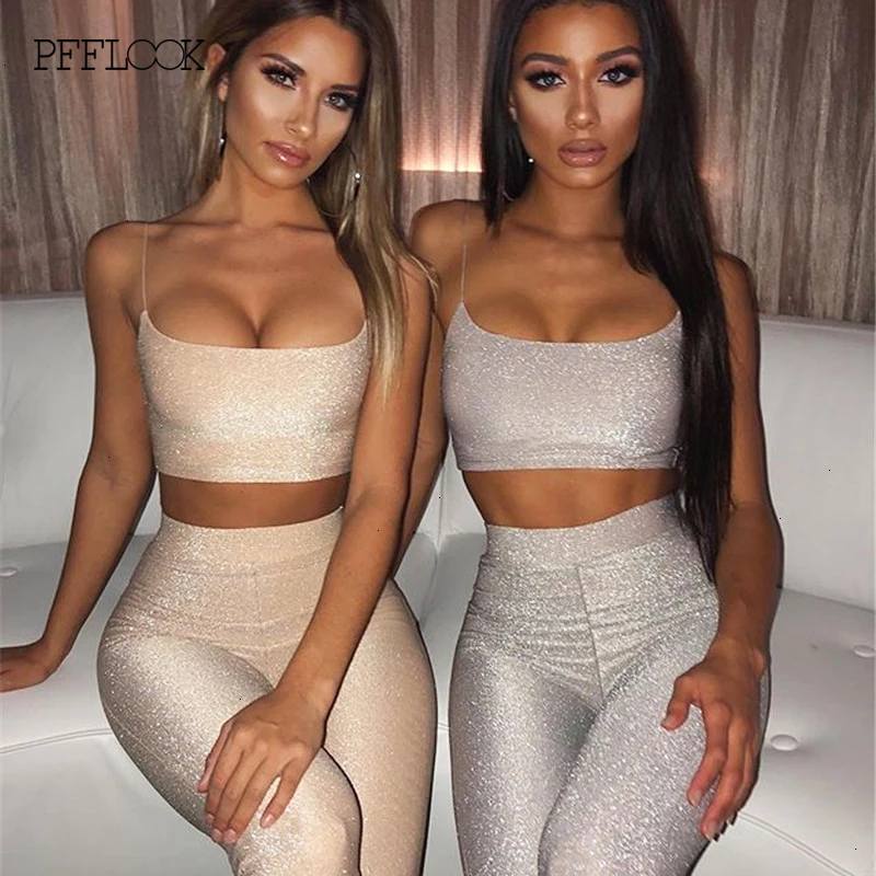 Special Offer PFFLOOK verano lentejuelas mono mujer mamelucos brillo sin tirantes ceñido al cuerpo Sexy Sashes Club Party Jumpsuits Mujer Discount 40% Today!
