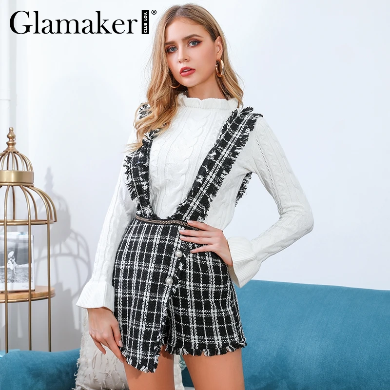 Special Offer Glamaker a cuadros falda de cintura alta tweed skort culottes Sexy botones club Falda corta para mujer flecos línea a mini Falda Mujer bottoms Discount 44% Today!