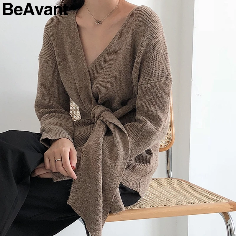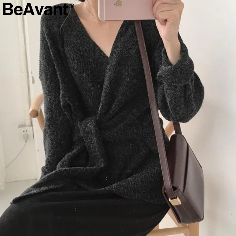 Special Offer BeAvant Casual bow tie de talla grande mujeres suéter elegante cuello en V tejido jumper femenino Otoño Invierno suéter negro suéteres 2019 Discount 46% Today!