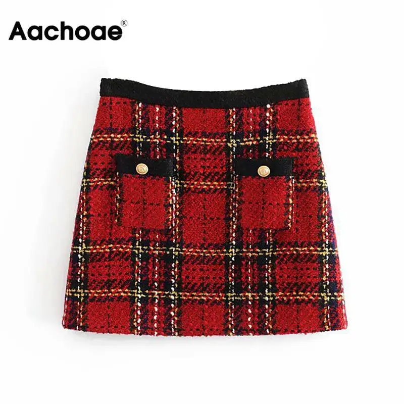 Special Offer Mujeres elegante Tweed Plaid falda bolsillos una línea de Moda Mini Faldas señoras verano cremallera Vintage Bottoms Faldas Mujer Moda 2020 Discount 50% Today!