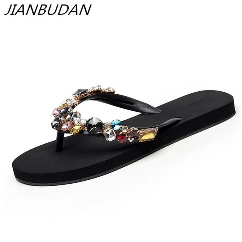 Special Offer JIANBUDAN zapatos de playa cómodos planos de mujer antideslizantes de fondo suave Casual Chanclas de imitación decoración de verano plano zapatilla Discount 51% Today!
