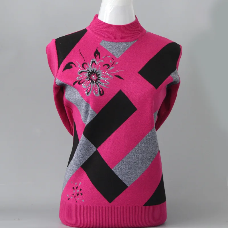 Special Offer NIFULLAN nuevo suéter y Jersey para mujeres madre Plaid estampado de punto tapas de fondo camisa de manga larga de punto Delgado Discount 6% Today!