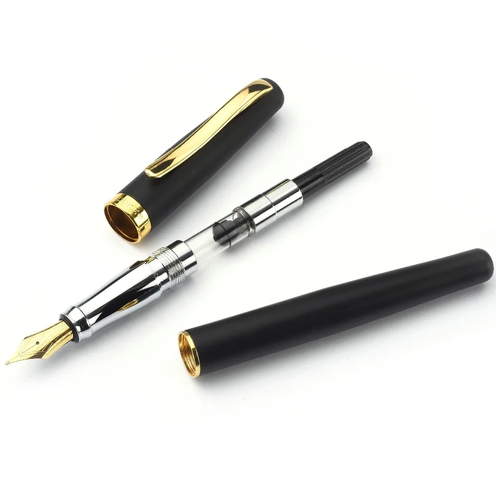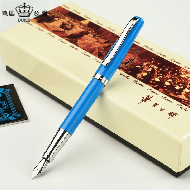 Special Offer Duque de lujo 209 negro y oro 0,5mm pluma fuente con 2 piezas de tinta Sac 1 piezas botella de tinta de Metal bolígrafos de acero para regalo envío gratis Discount 10% Today!