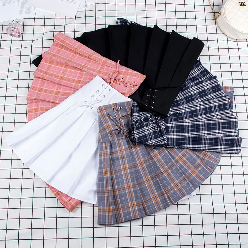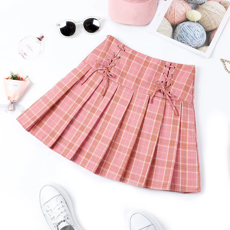 Special Offer S XXL de cintura alta de las mujeres de una línea de falda Linda lazo de encaje de estudiante falda escocesa dulce verano Pantalones Falda plisada de seguridad Mini falda Discount 30% Today!