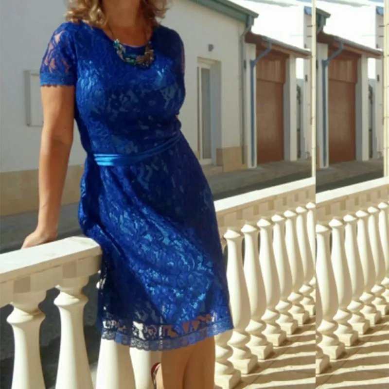 Special Offer Vestido de verano para mujer de talla grande 6XL de encaje elegante vestido de señora de manga corta de moda Casual de encaje hasta Vestidos de fiesta de gran tamaño Discount 31% Today!