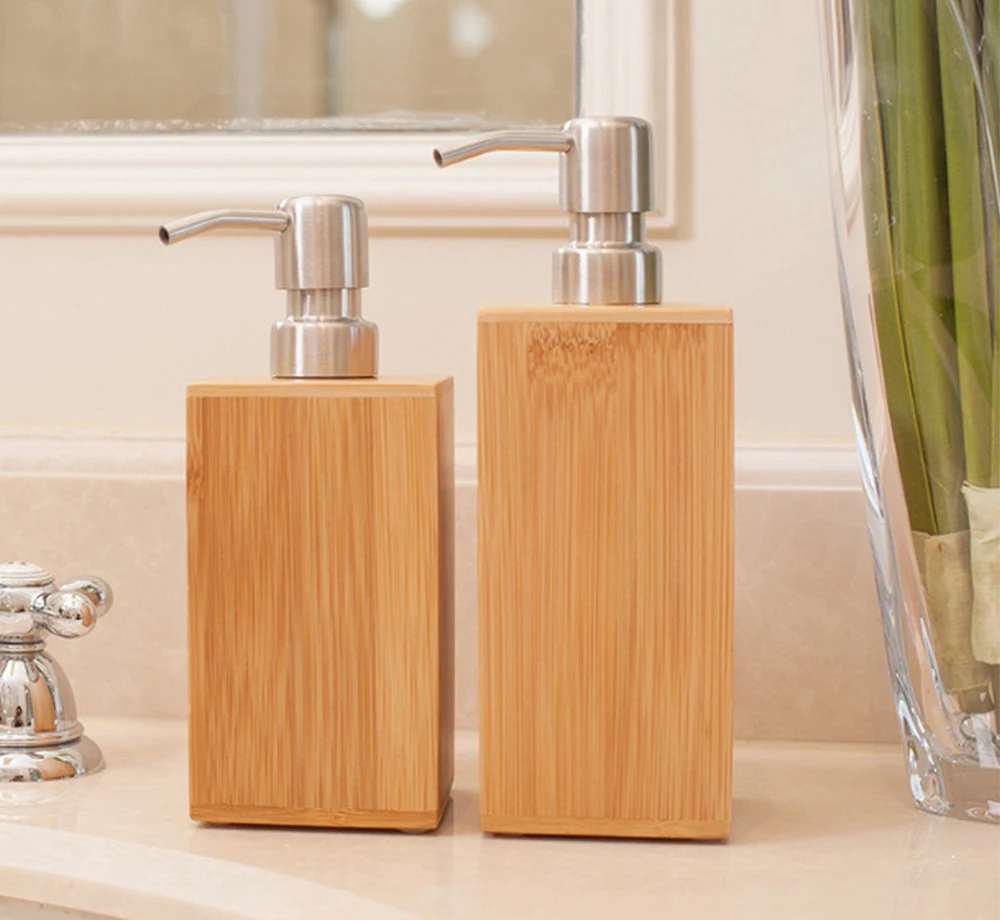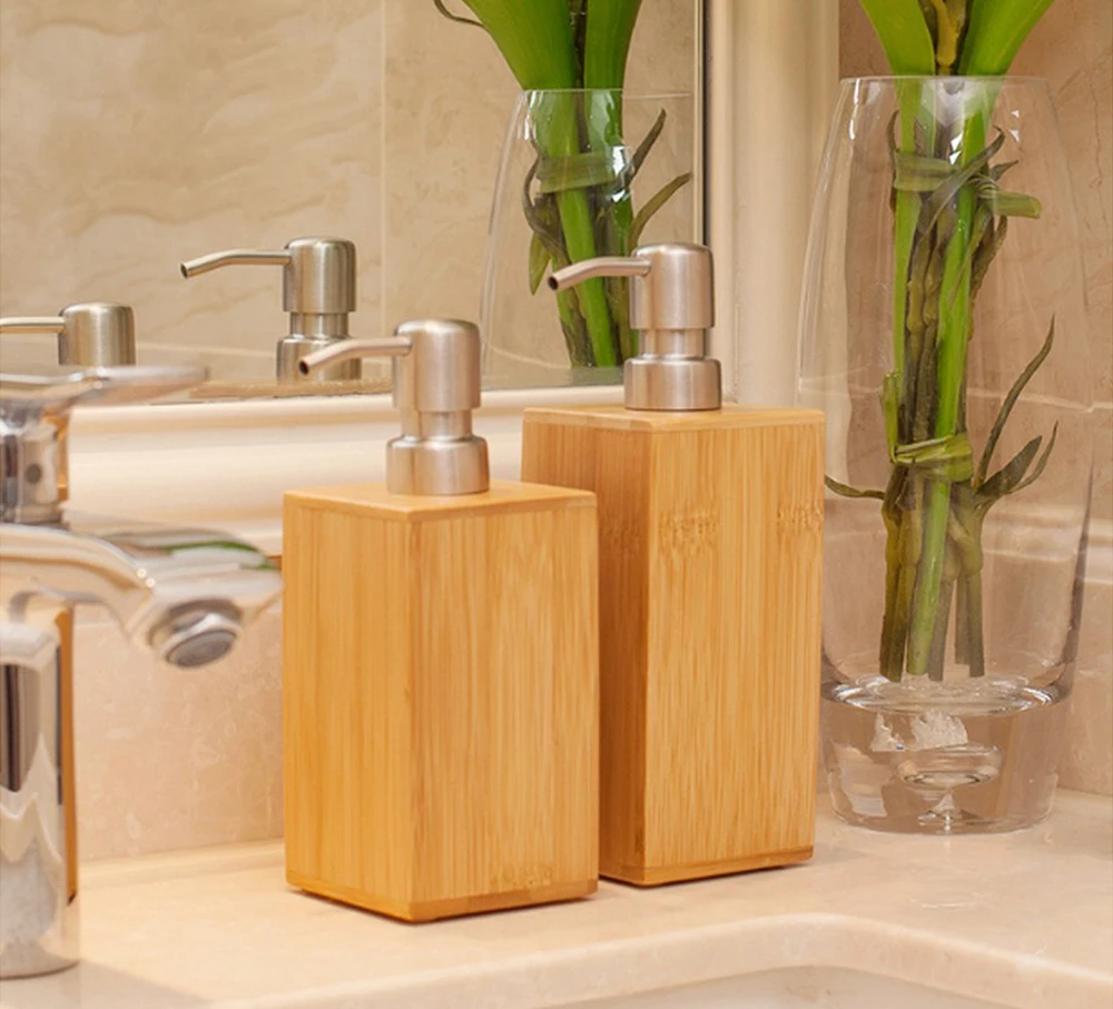 Special Offer Botella de ducha boca a presión de acero inoxidable con líquido para lavar a mano de madera exquisita de alta calidad, dispensador de jabón de Hotel de cocina LFB266 Discount 37% Today!