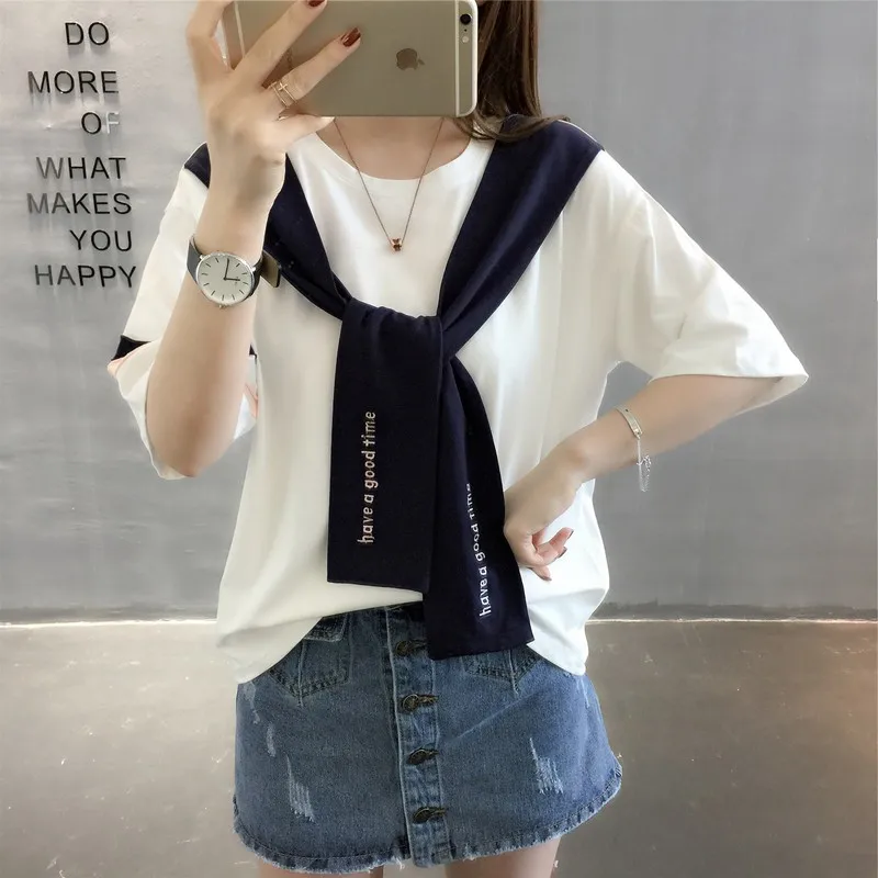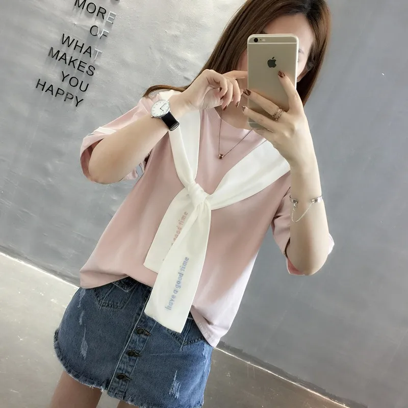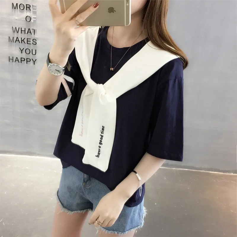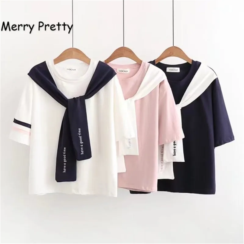 Special Offer Feliz camiseta de marinero bonito mujeres 2019 nuevo verano estilo japonés bordado crop Camisetas manga corta lazo cuello algodón Discount 40% Today!