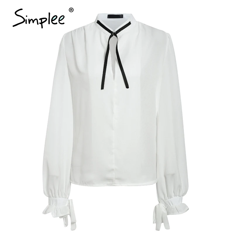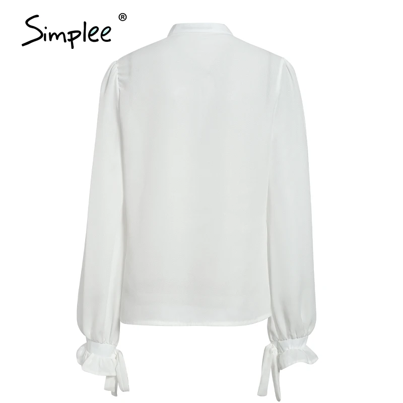 Special Offer Simplee Sexy sólido casual mujer blusa camisa de manga larga cuello blanco corbata blusas elegantes Oficina señora trabajo desgaste blusas de fiesta Discount 40% Today!