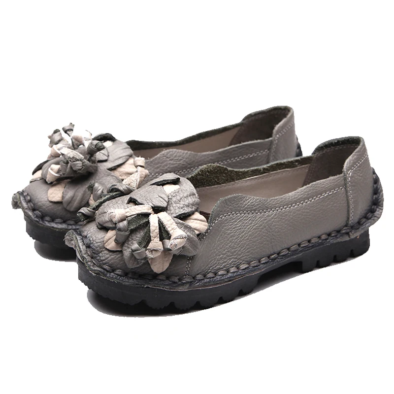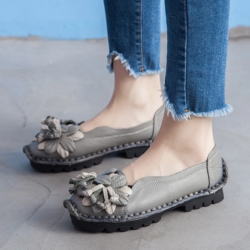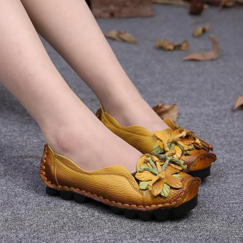 Special Offer Nuevas flores de otoño zapatos hechos a mano de mujer Floral suave fondo plano Casual Zapatos estilo folk mocasines mujeres zapatos de cuero genuino Discount 45% Today!