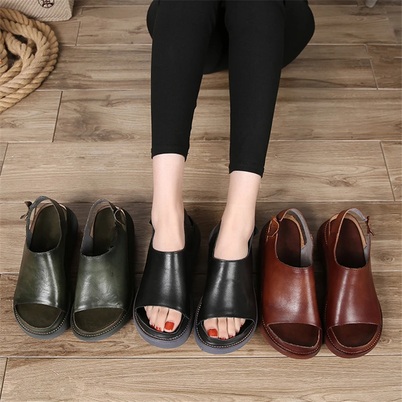 Special Offer Sandalias femeninas 2019 verano nuevo grueso de fondo hecho a mano de cuero genuino sandalias de Mujer Zapatos casuales de fondo plano sandalias de plataforma Discount 49% Today!