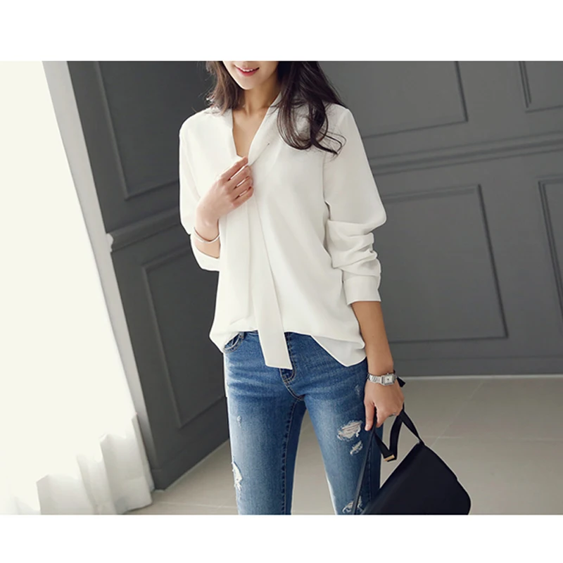 Special Offer Camisa de manga larga con lazo 2019 Otoño e Invierno nueva moda mujer ropa suelta Camisa de gasa blusa de mujer blusas 699C 30 Discount 5% Today!