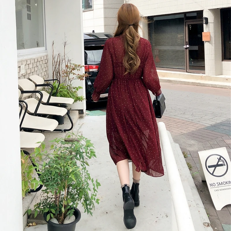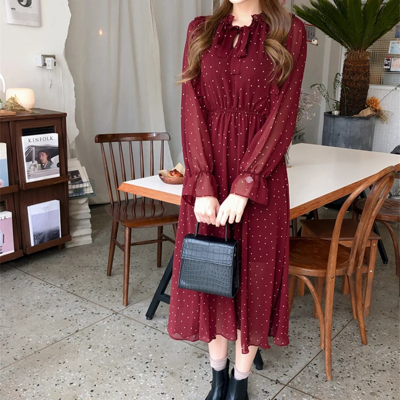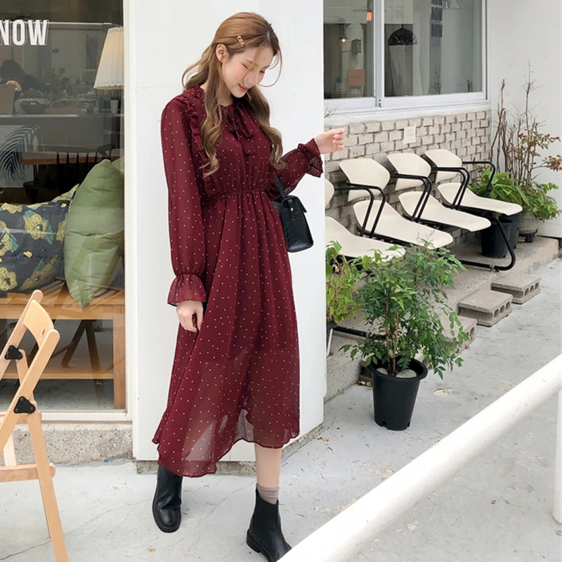 Special Offer BGTEEVER Vintage Lace Up vestido impreso mujeres volantes gasa femenina Maxi vestido forro elegante Vestidos de fiesta mujer otoño 2019 Discount 50% Today!