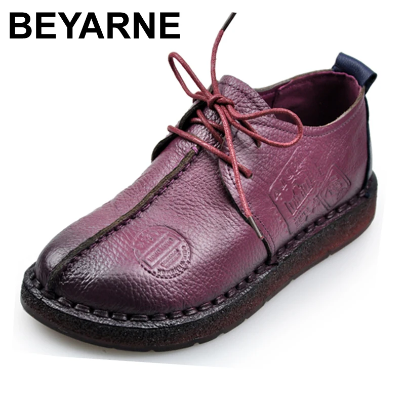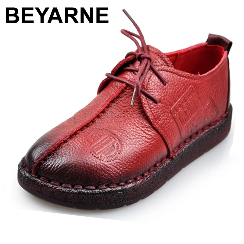 Special Offer Moda Retro zapatos de costura a mano mujeres pisos de cuero genuino suave inferior mujeres zapatos suaves cómodos zapatos casuales mujer mocasines Discount 50% Today!