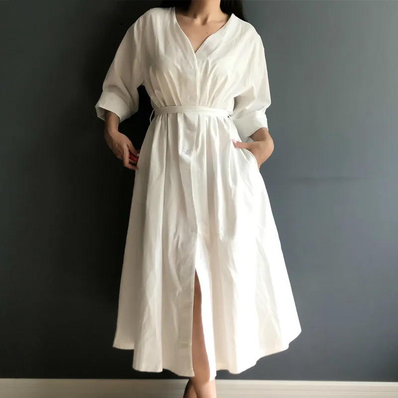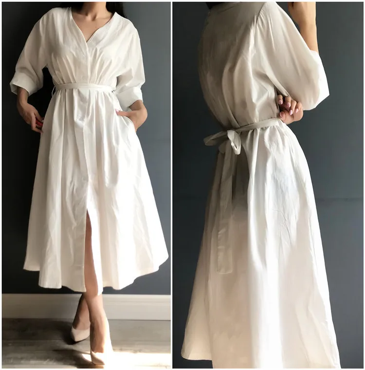 Special Offer Primavera Verano algodón Lino elegante señoras plisado largo blanco vestidos cuello V encaje hasta arco Colorfaith nuevos 2019 vestidos de mujer Discount 50% Today!