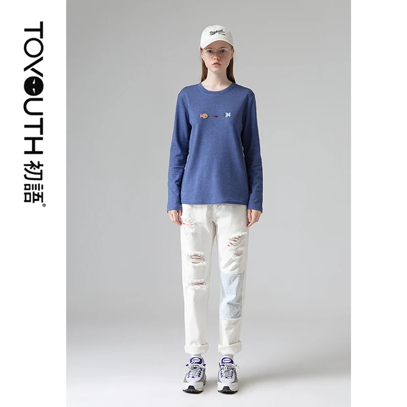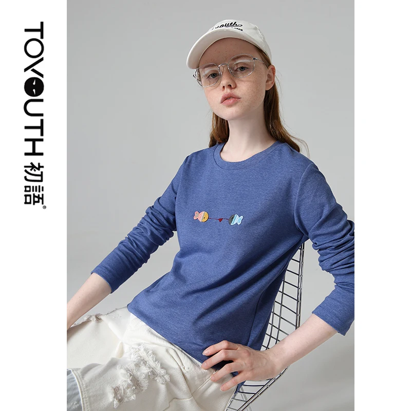 Special Offer Toyouth mujeres bordado Fish camisetas Casual cuello redondo manga larga camisetas divertidas otoño Bottoming Camisetas Mujer Discount 57% Today!