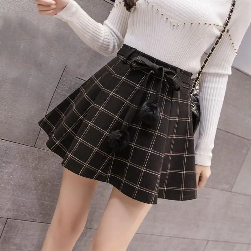Special Offer Falda plisada de invierno de 2018 para mujer de cintura alta estilo Harajuku Faldas a cuadros Mini Linda Vintage señoras Kawaii Bow Tie falda Faldas x41 Discount 0% Today!
