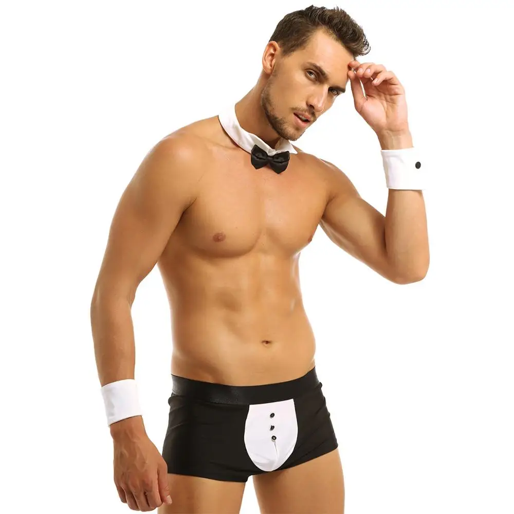Special Offer Hombre Butler camarero esmoquin Lencería traje Bowknot lindo Boxer Shorts juego ropa interior de los hombres con corbata de moño para brazaletes o collar trajes Discount 0% Today!