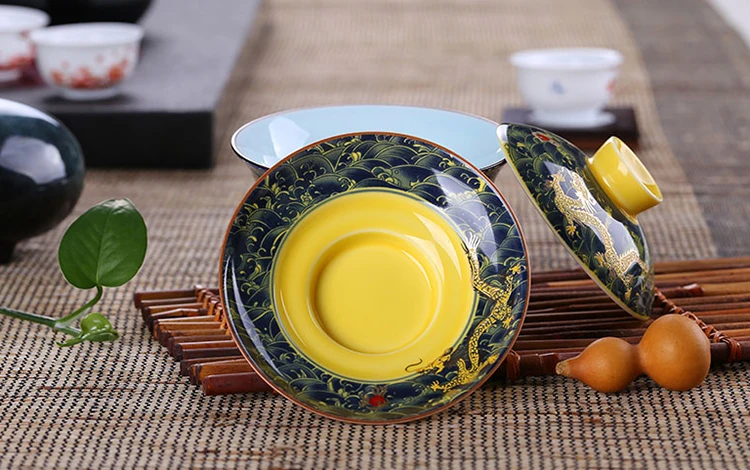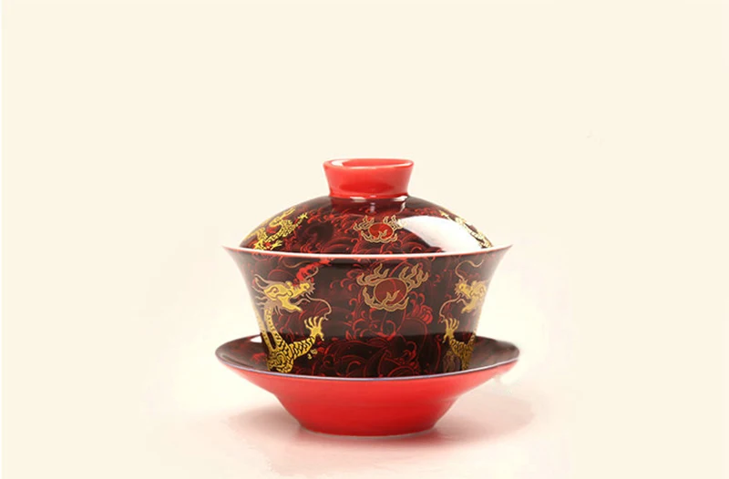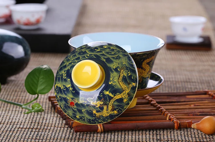 Special Offer Juego de té gai wan de tradición china juego de teteras Dehua gaiwan dragón de cerámica retro grandes tazones cubiertos de té Kung Fu con tazas de té Discount 26% Today!