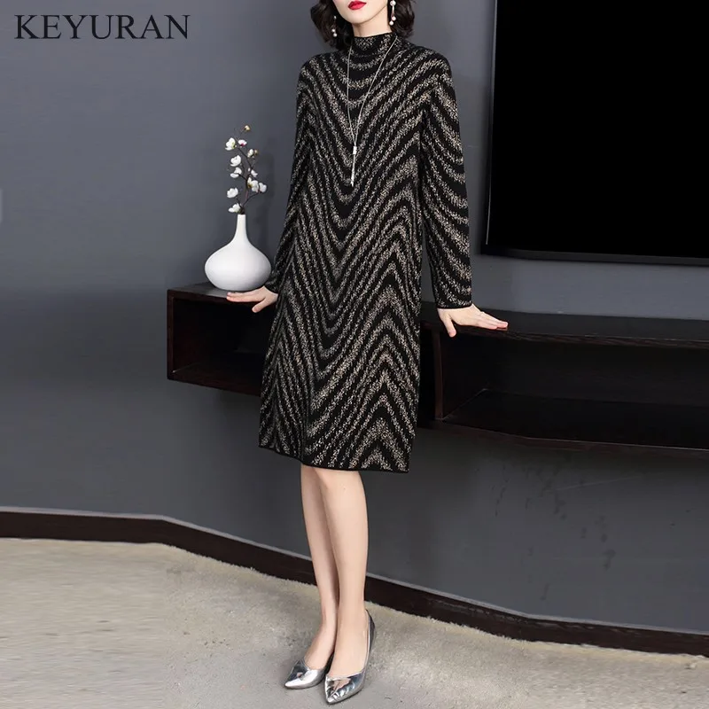 Special Offer De talla grande M 4XL 2019 nuevo primavera Otoño Invierno Vestido de punto para mujer cuello alto de manga larga de fondo suelto suéter vestidos Discount 30% Today!
