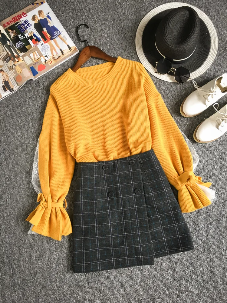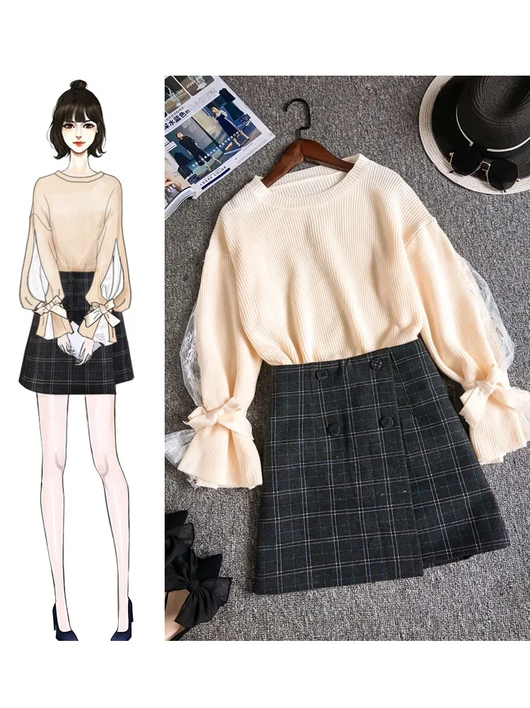 Special Offer ICHOIX dulce plaid 2 piezas falda chica tops estilo coreano y falda conjunto S XL de dos piezas trajes de invierno de 2019 las mujeres de 2 piezas conjunto Discount 30% Today!