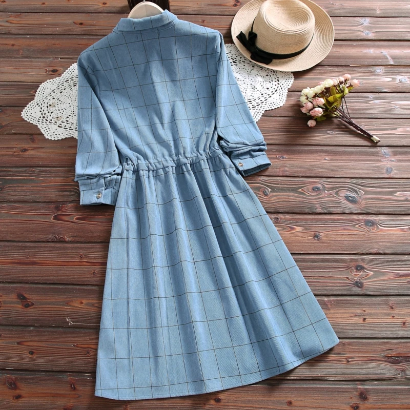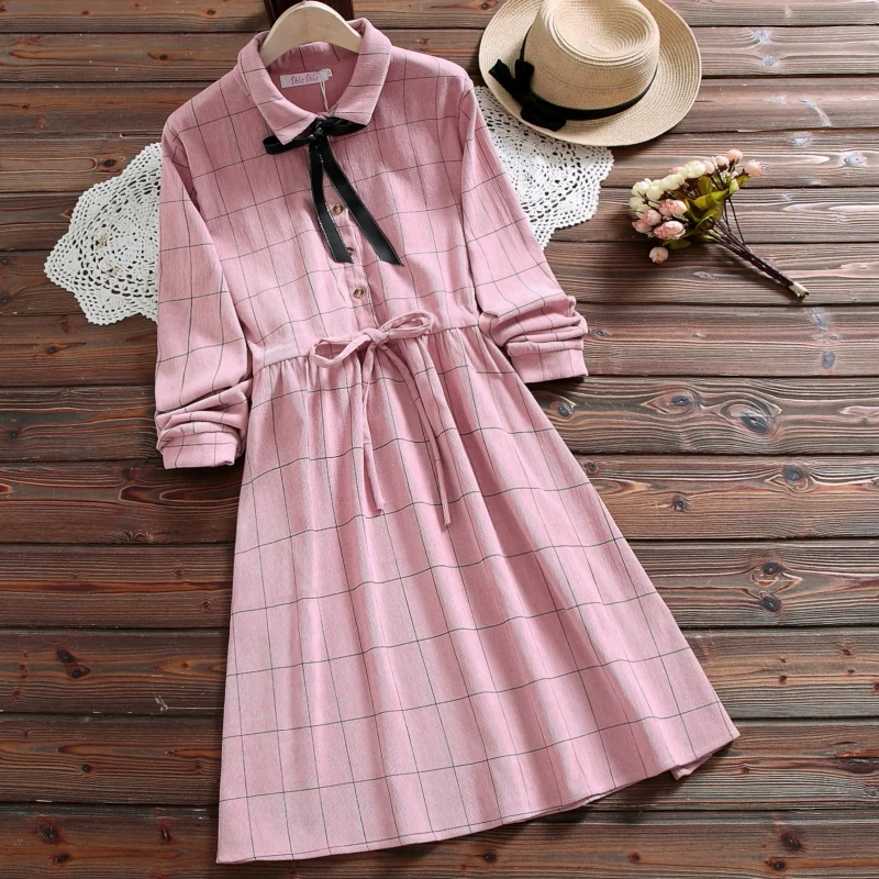 Special Offer Mori chica moda mujer otoño primavera vestido bata Vintage vestido a cuadros Vestidos femeninos arco manga larga Mujer vestido de pana Discount 32% Today!
