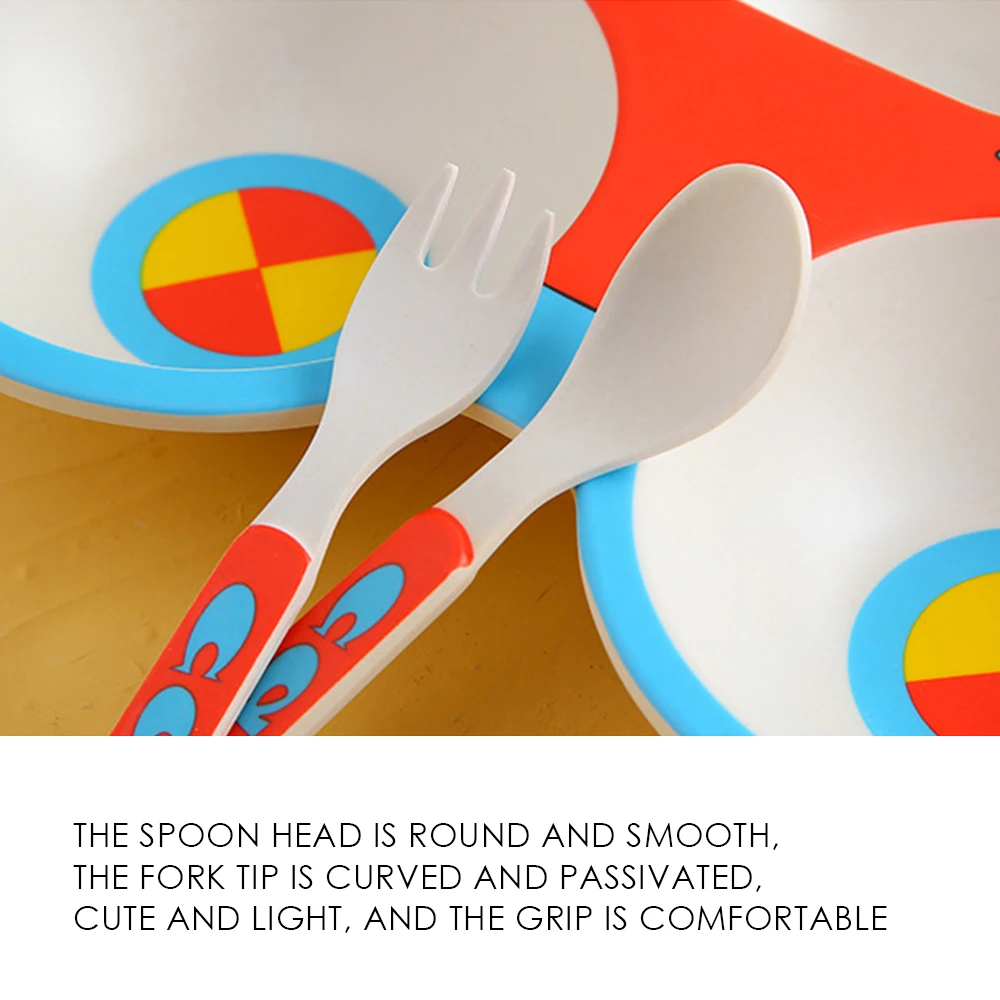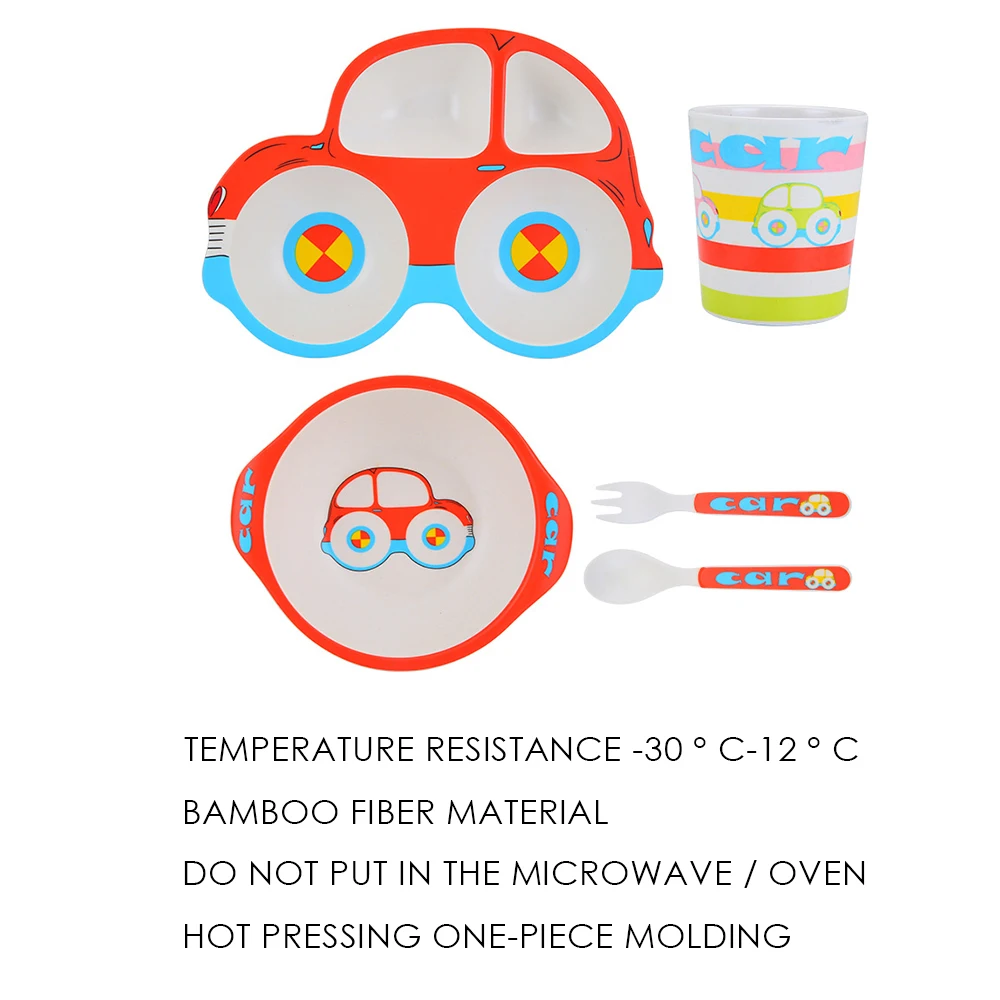 Special Offer 5 unids set plato de bebé vajilla de bambú para niños conjunto de alimentos para bebés cuenco de fibra con taza cuchara plato tenedor utensilios para niños Discount 34% Today!