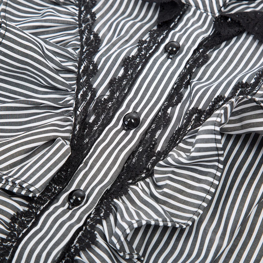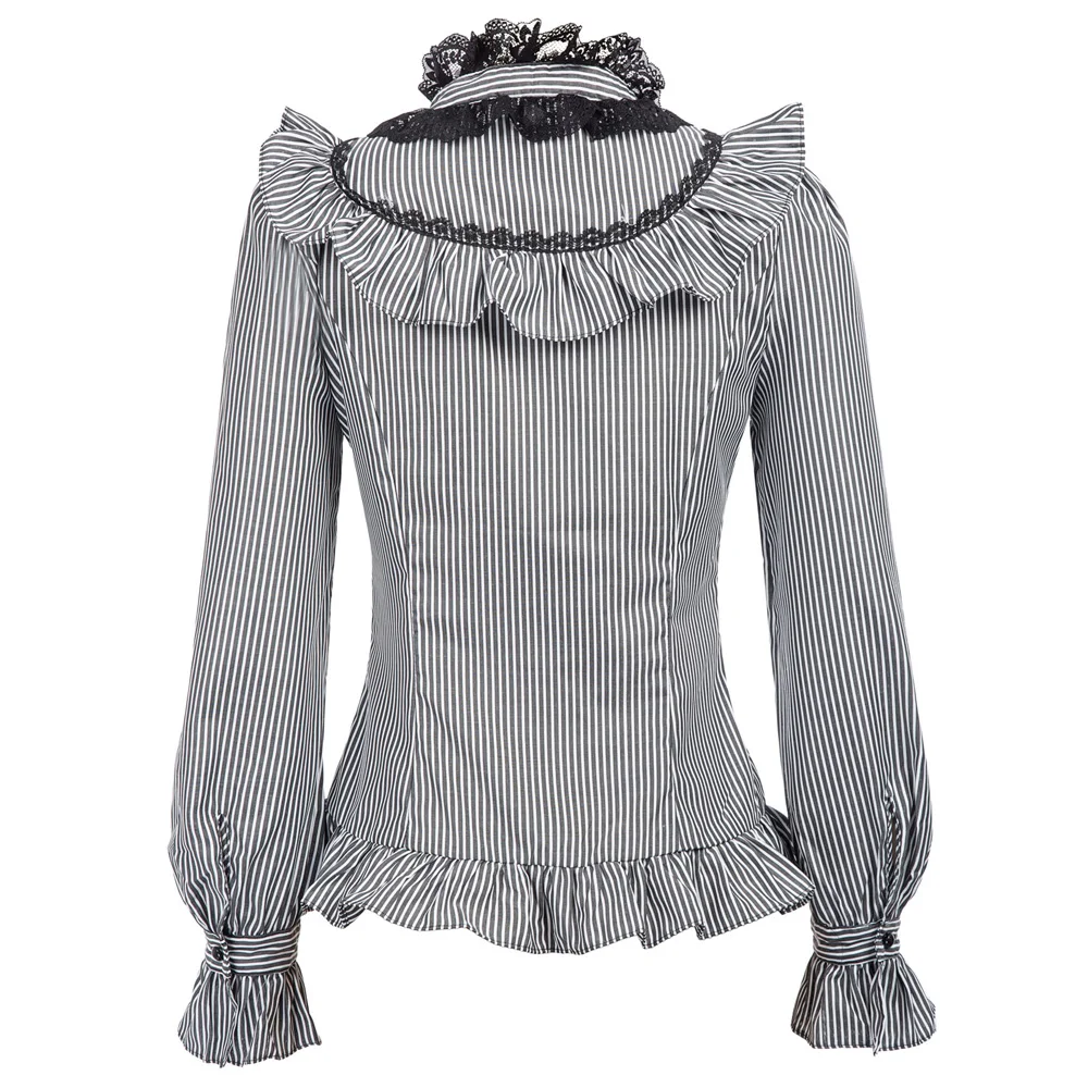 Special Offer Primavera otoño mujer camisa vintage retro renacentista Pinstripe manga larga soporte cuello arco nudo camisa con volantes blusa gótica Discount 36% Today!