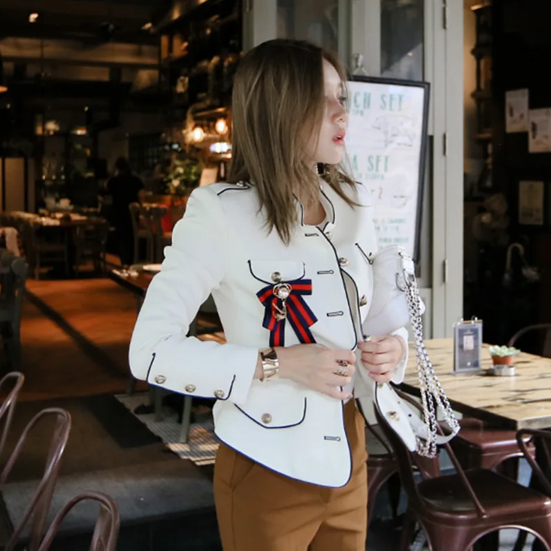 Special Offer Moda de talla grande Otoño Invierno mujeres abrigos 2018 azul blanco manga completa soporte Vintage azul marino uniforme abrigo señoras prendas de vestir abrigos Discount 40% Today!