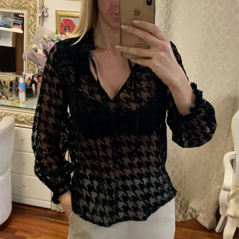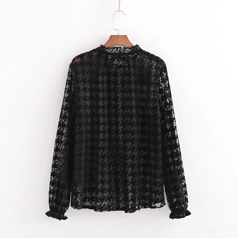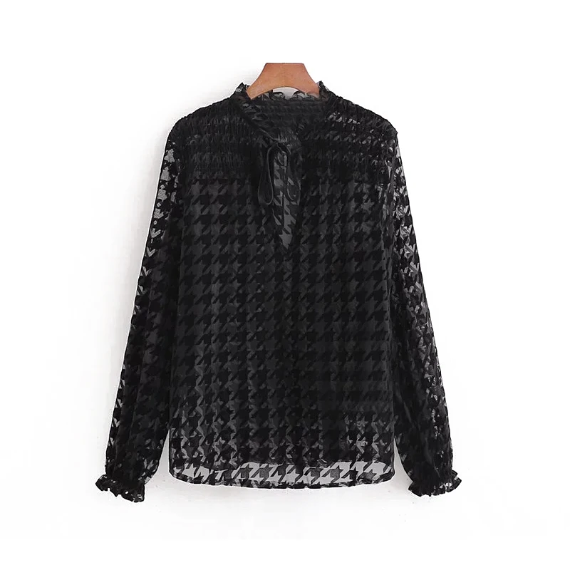 Special Offer Nuevas camisas elegantes de pata de gallo para mujeres 2019 blusas vintage de moda para señoras blusas transparentes sexis para mujeres chic para chicas Discount 40% Today!