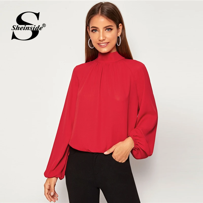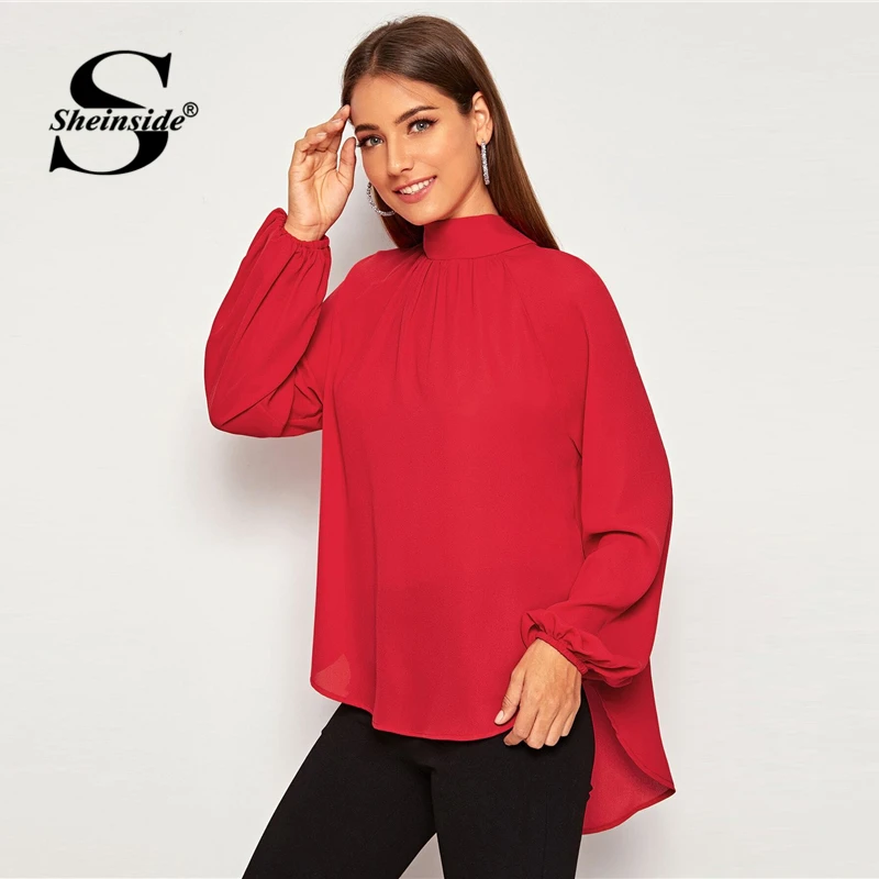 Special Offer Blusa elegante de chifón de manga raglán con cuello de lazo para mujer 2020 blusas de manga de linterna de muelle para mujer Discount 45% Today!