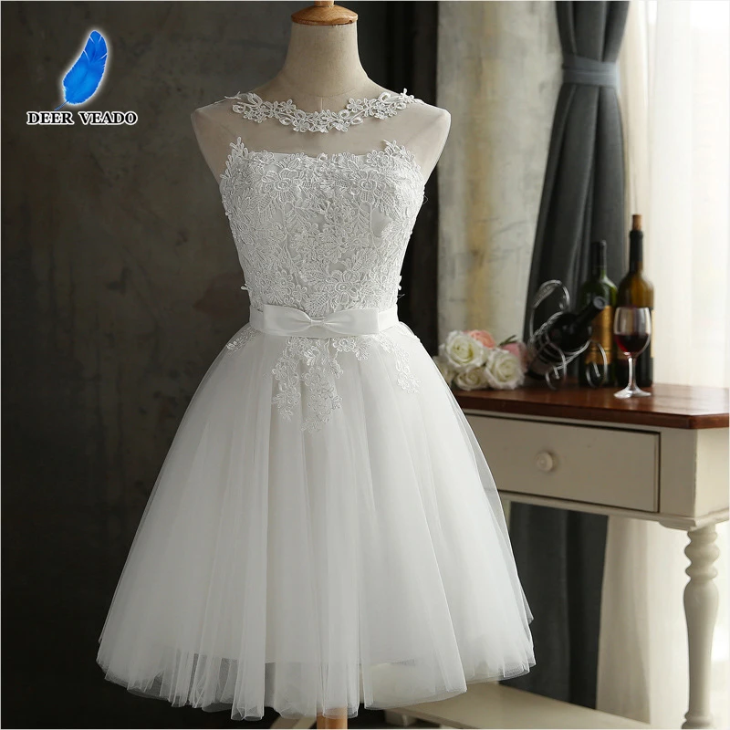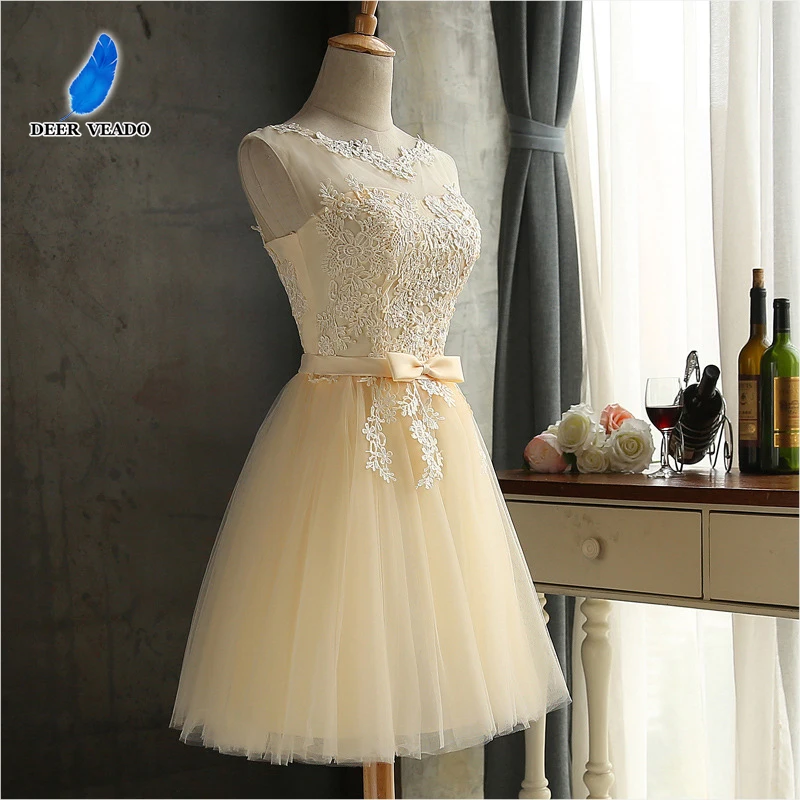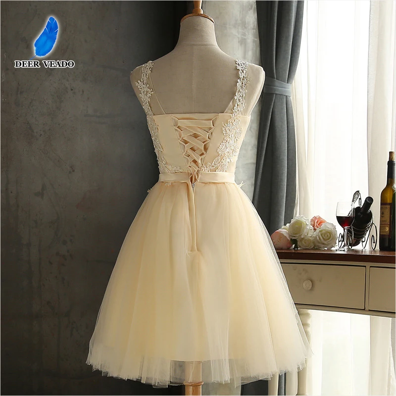 Special Offer DEERVEADO vestido de fiesta de cóctel 2019 elegante sin espalda Vestidos cortos de cóctel ajustable encaje espalda vestido de graduación CH604B Discount 47% Today!