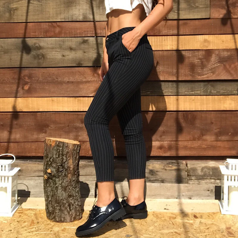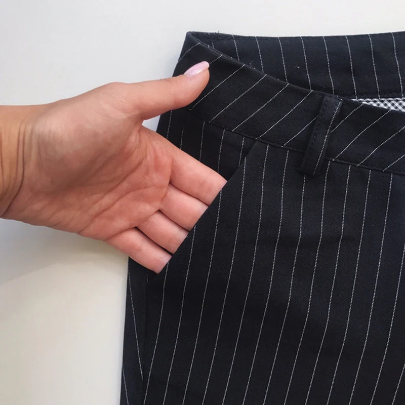 Special Offer BGTEEVER trabajo pantalones a rayas para mujeres pantalones de algodón flacos alta cintura Oficina señora Vintage Pantalones suaves mujer Casual Bottoms Discount 48% Today!