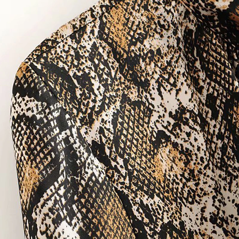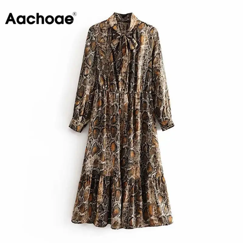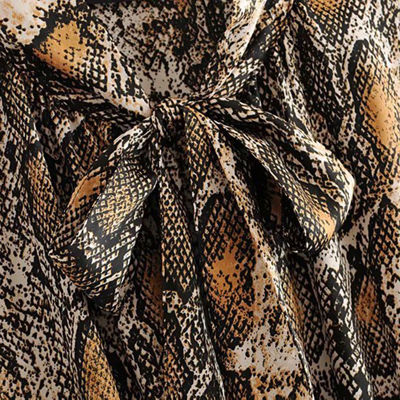 Special Offer Vestido de camisa a la moda con estampado de serpiente y cuello de lazo Vestidos sueltos de manga larga con cintura elástica hasta la rodilla Vestidos plisados de otoño Discount 50% Today!