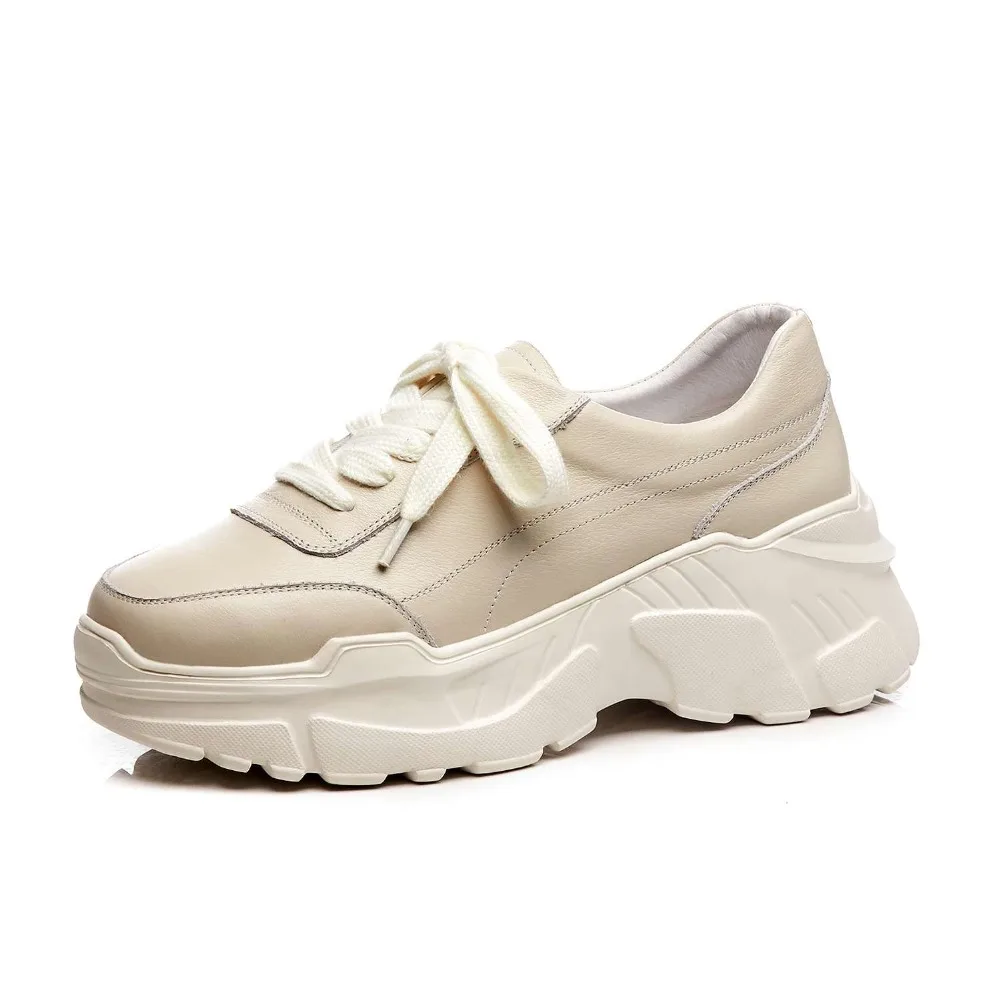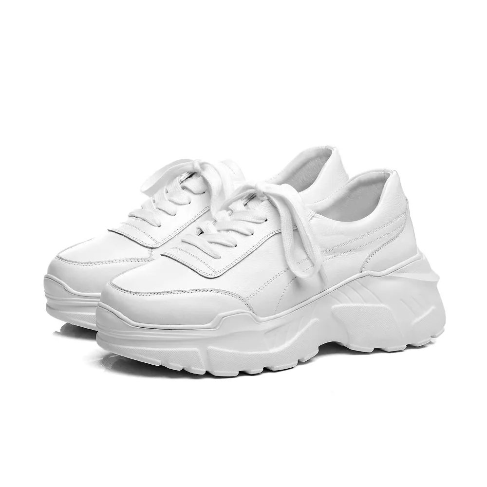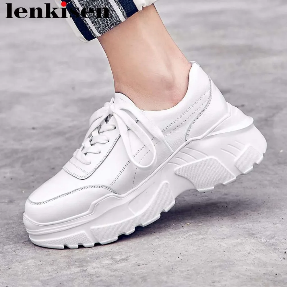 Special Offer 2019 nueva llegada zapatillas blancas populares de cuero de grano completo con plataforma alta con cordones estilo conciso para mujer zapatos vulcanizados L97 Discount 51% Today!