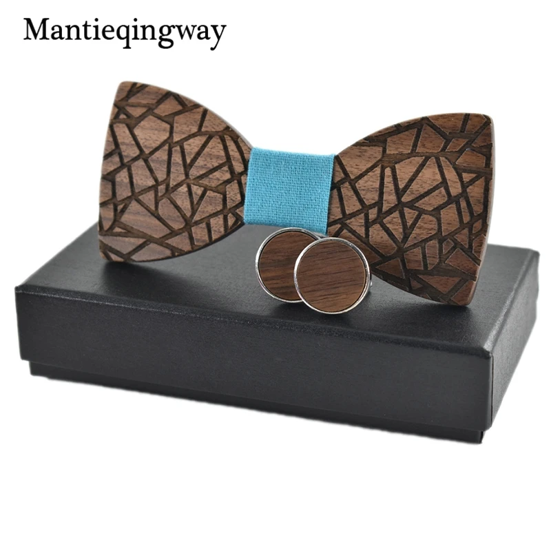 Special Offer Conjunto de gemelos de corbatín de madera Mantieqingway para hombre, corbata de lazo de madera de marca, gemelos para novio de boda Discount 0% Today!