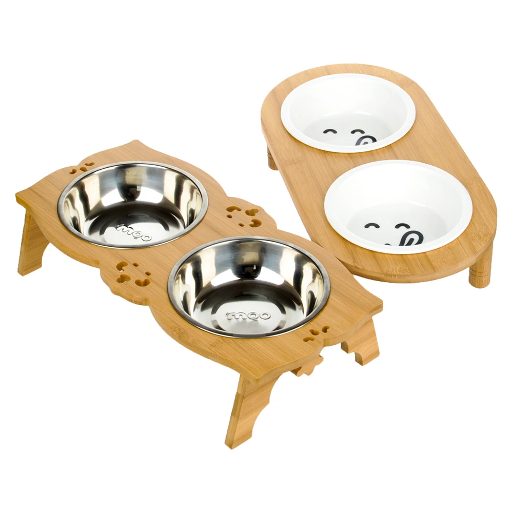 Special Offer Woopet cuenco para gatos y perros claquetas de bambú dos cuencos de porcelana de agua y comida Discount 11% Today!