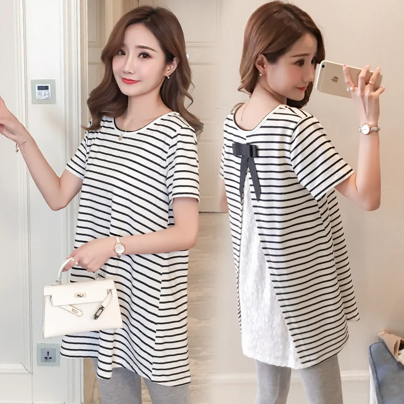 Special Offer 5062 # tira de algodón Patchwork encaje Blusa de maternidad con arco camisa suelta ropa para mujeres embarazadas verano Camisetas Discount 12% Today!