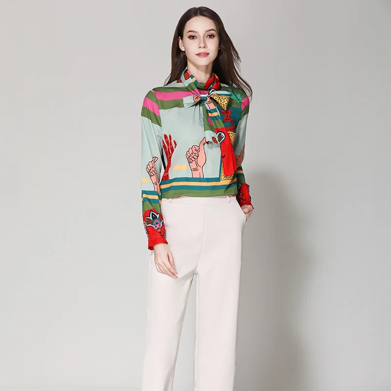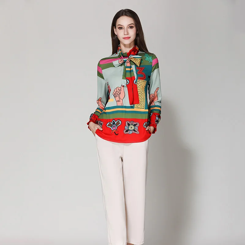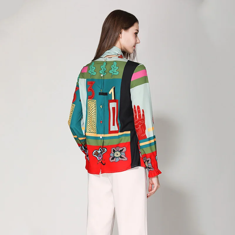 Special Offer Patrón único diseño de pista mujeres colorido impresión camiseta de lazo Collar de talla grande Blusa de gasa de verano de calidad Tops bohemio Discount 15% Today!