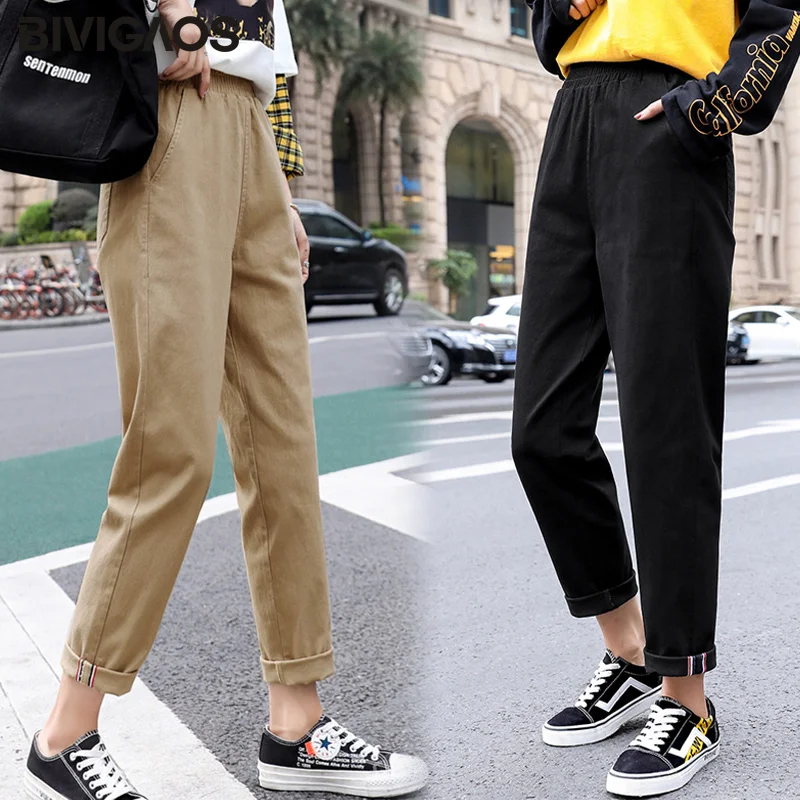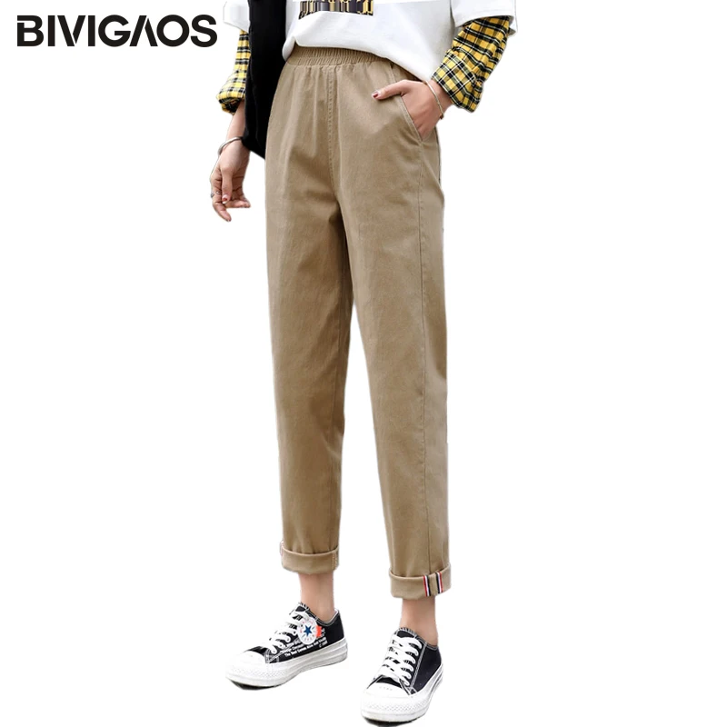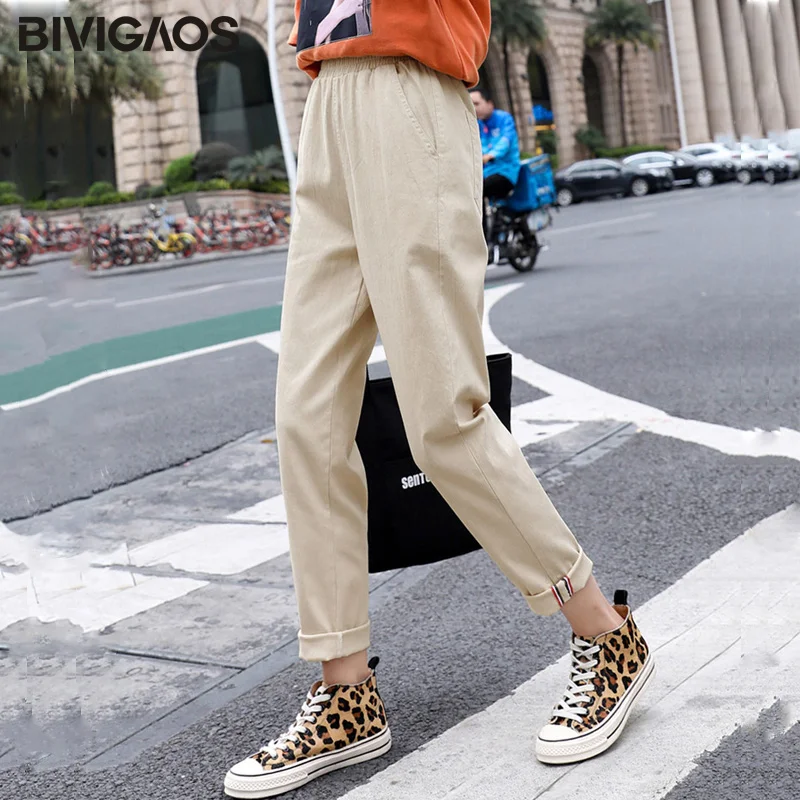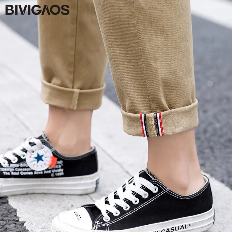 Special Offer BIVIGAOS nuevo fondo Hemming Color cinta Cargo pantalones mujeres overol pantalones de algodón de cintura alta holgado recto Casual Harem Pantalones Discount 25% Today!