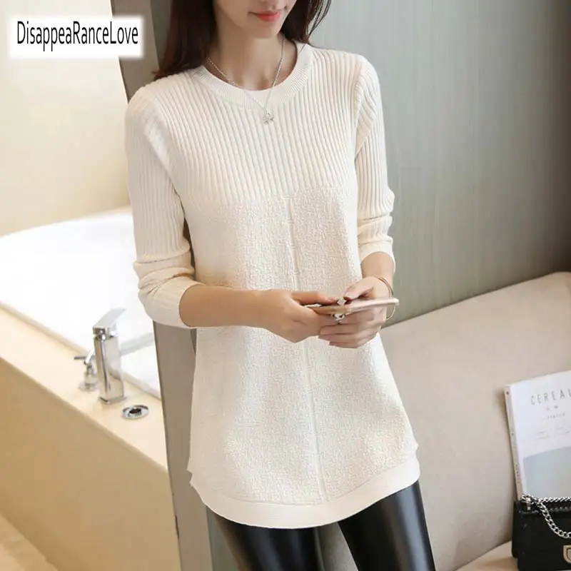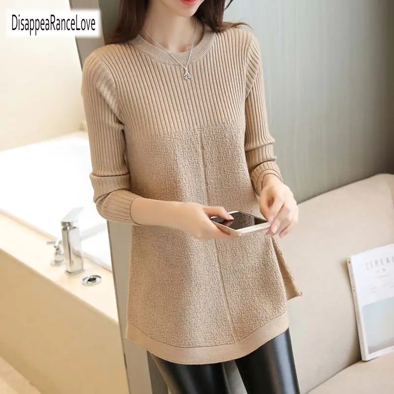 Special Offer 2019 Otoño Invierno suéter mujer cuello redondo suéter de punto tamaño grande suelta mangas largas mujeres tapas camisa inferior suéter Discount 28% Today!